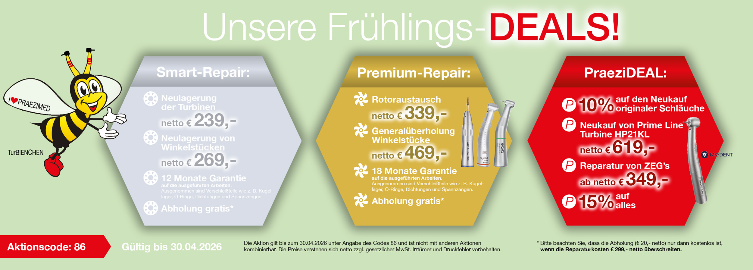 In immer mehr Bereichen geht der Trend hin zur Reparatur statt zur sofortigen Neuanschaffung. Reparaturen schonen Ressourcen und helfen somit, die Umwelt zu schützen. Dies gilt natürlich auch für Ihre rotierenden Instrumente in der zahnärztlichen Praxis oder die Laborantriebe im Dental-Labor.